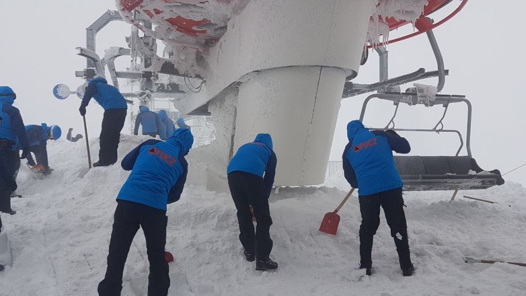 Jučer je uspješno okončano čišćenje snijega i stubova na izlaznoj stanici lifta četverosjeda, a u ovoj akciji je učestvovalo 50 pripadnika FUCZ i sedam uposlenika firme ZOI ‘84. Iako u izuzetno teškim vremenskim uslovima, pri vjetru koji je puhao i do 150km/h (oko 40-42 m/s) i temperaturi koja je dostizala -15 stepeni celzijusovih, pripadnici FUCZ uspjeli su ukloniti oko 100 kubika snijega i leda. Koristili su opremu za rad u zimskim uslovima (lopate, krampe, motorne pile, mašine za razbijanje i rezanje betona) te četvere motorne sanke za prevoz ljudstva i opreme. Firma ZOI ‘84 obezbijedila je prevoz RATRAK mašinama do vrha Bjelašnice. Pripadnici FUCZ-a uložili su nadljudske napore kako bi se u što kraćem roku stavio u finkciju ski-lift za posjetioce Bjelašnice i spriječila veća materijalna šteta vrijedne opreme preduzeća ZOI ‘84. Ova inenzivna aktivnost pripadnika FUCZ rezultirala je da su se stvorile mogućnosti skorog puštanja u rad četverosjeda na našoj olimpijskoj planini.