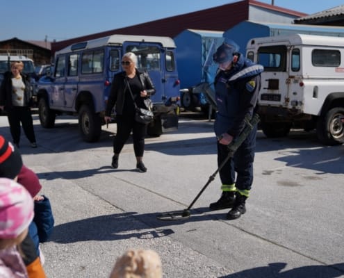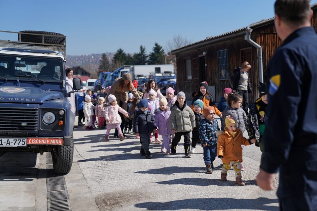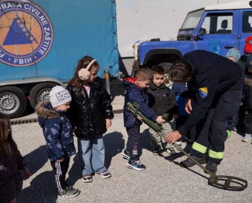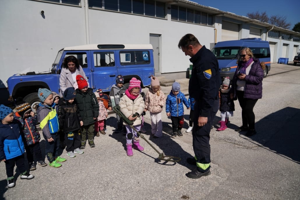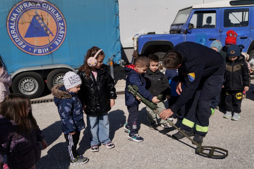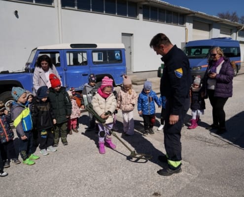 Djeca iz vrtića “Žubor”, njih četrdeset, starosti od 2 do 6 godina, zajedno sa učiteljicama, posjetila su jučer Sektor za operacije deminiranja i uklanjanja eksplozivnih sredstava Federalne uprave civilne zaštite gdje su se upoznali s važnom i humanom profesijom deminera kao i sa svim alatima i opremom koju demineri koriste u ovom hrabrom i opasnom poslu.