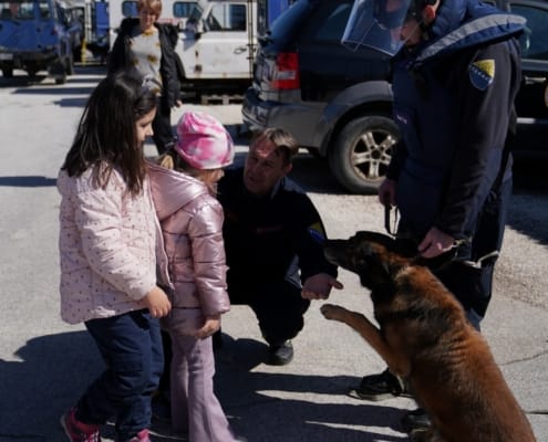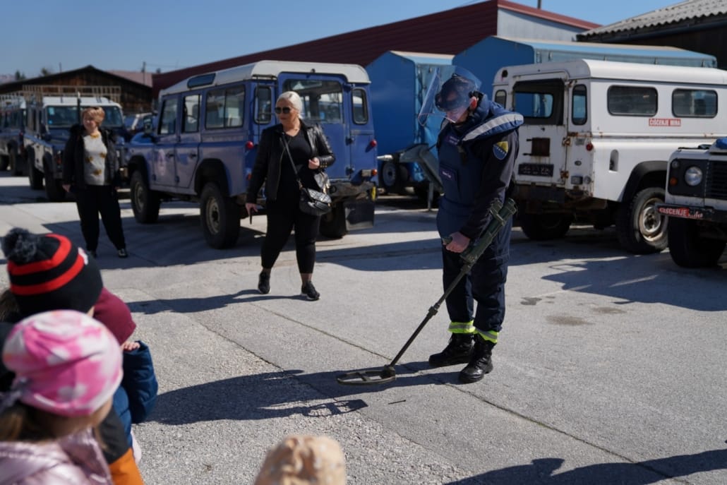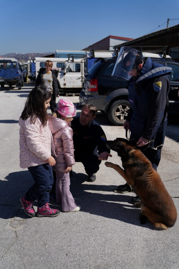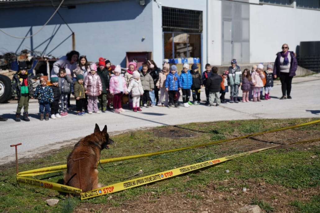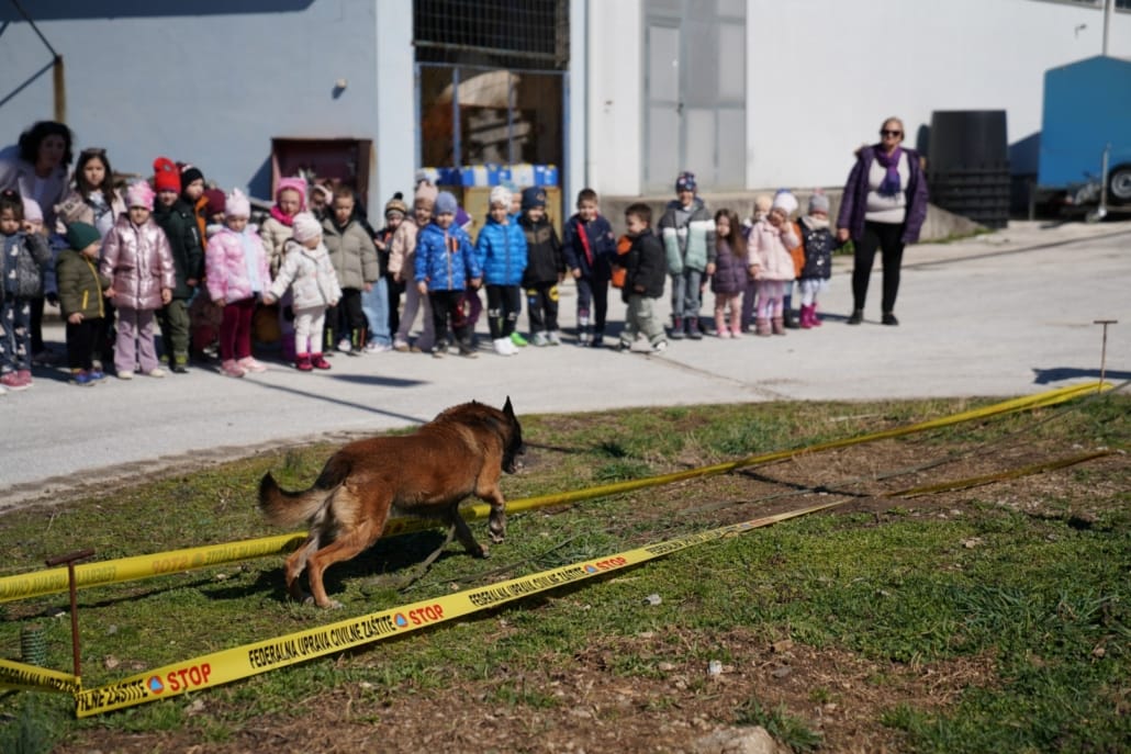 Jedan od najuzbudljivijih trenutaka bio je kada su mališani imali priliku vidjeti i upoznati deminerske i potražne pse koji su također članovi deminerskih i spasilačkih timova i saznati koliko su ovi psi hrabri i važni za uspješno izvođenje operacija deminiranja i spašavanja. Mališani su kroz kratku pokaznu vježbu mogli vidjeti kako pas Astor i njegov kerovođa rade zajedno na pronalasku mina.