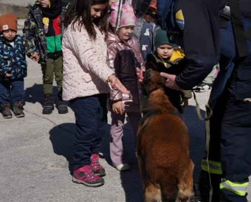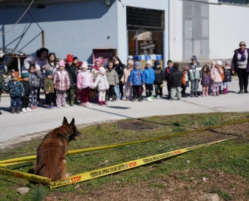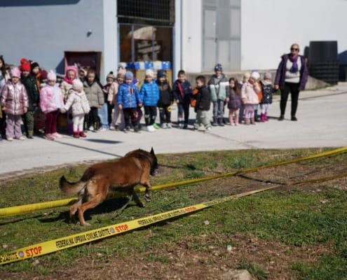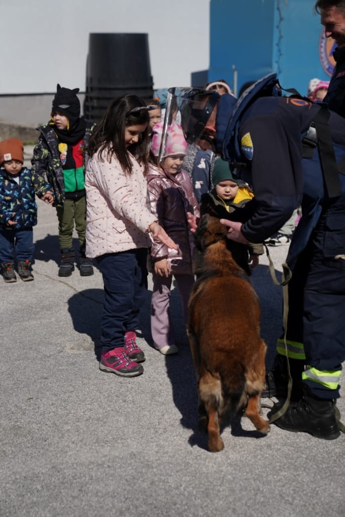 Ova posjeta organizirana je u sklopu aktivnosti na temu “Ko brine o nama”, a djeca su kroz zanimljive prezentacije, prilagođene njihovom uzrastu, saznala koliko je važan rad deminera, spasilaca i njihovih vjernih četveronožnih prijatelja – potražnih i deminerskih pasa.