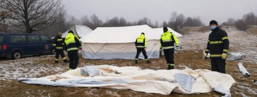 Pripadnici Federalne uprave civilne zaštite (FUCZ) juče su počeli postavljati šatore na lokalitetu Lipa između Bihaća i Bosanskog Petrovca gdje bi u narednih nekoliko dana trebali biti izmješteni migranti koji trenutno borave u napuštenim objektima i na ulicama Grada Bihaća. Radi se na postavljanju dijela privremenog kampa za ljude bez smještaja u središtu Bihaća, nakon čega će uslijediti gradnja pravog prihvatnog centra.