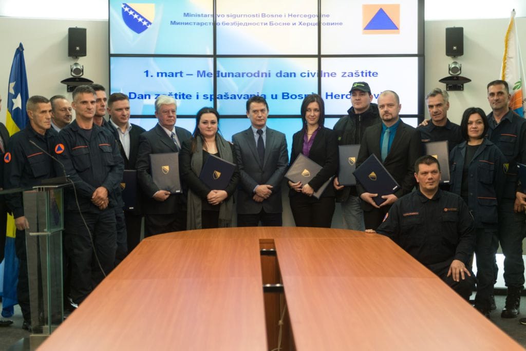 Povodom obilježavanja 1. marta, Dana zaštite i spašavanja – Civilne zaštite BiH i Međunarodnog dana civilne zaštite, Ministarstvo sigurnosti BiH, Sektor za zaštitu i spašavanje, i ove, kao i ranijih godina, Odlukom Ministarstva sigurnosti BiH, organizacijama i pojedincima iz sistema zaštite i spašavanja dodijelilo je javna priznanja (zahvalnice i pohvale) za izuzetan doprinos u oblasti zaštite i spašavanja.