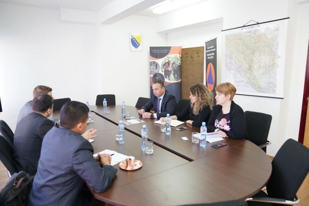 Članovi tima za civilno-vojnu saradnju (CMSE) Ambasade SAD-a u BiH, koji su preuzeli dužnost od prethodnog tima koji je završio misiju, posjetili su danas Federalnu upravu civilne zaštite (FUCZ) kako bi novi tim uspostavio kontakt sa rukovodstvom ove Uprave i nastavio započetu saradnju. Obje strane složile su se da je potrebno jačati lokalnu zajednicu i resurse civilne zaštite na nivou općina kako bi se što bolje odgovorilo na prirodne i druge nesreće a prioritet buduće saradnje i djelovanja biće općine sa malim budžetom koje su ugrožene prirodnim i drugim nesrećama.