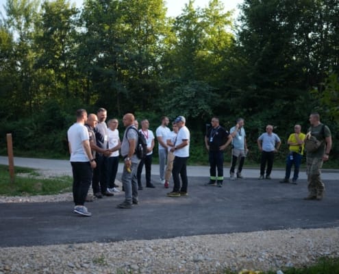 Nakon što je rasformiran kamp u Potočarima učesnici su krenuli prema Memorijalnom centru Srebrenica-Potočari, a zatim su upostavili punktove i postavili šator za potrebe ambulante.